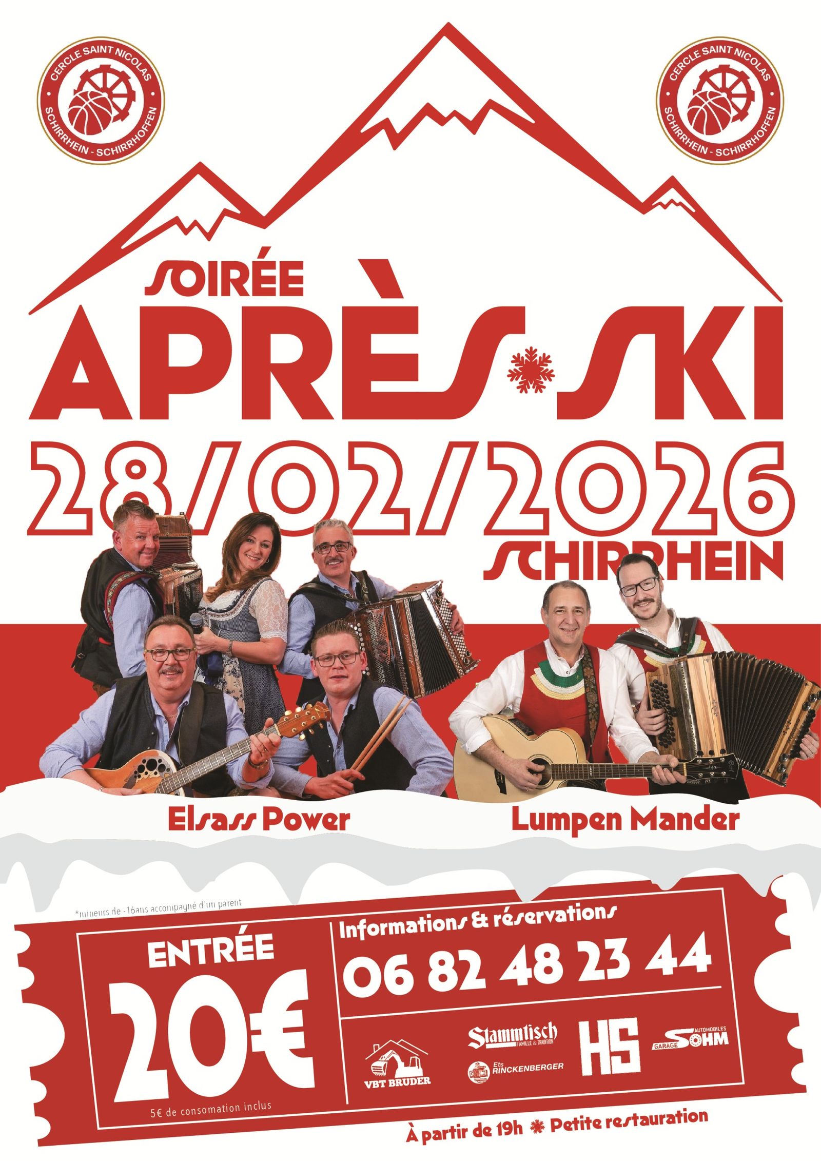 Pour une soirée festive inoubliable…venez participer à la soirée après-ski de la section basket du cercle Saint Nicolas de Schirrhein-Schirrhoffen le 28 février 2026 à l’ESC